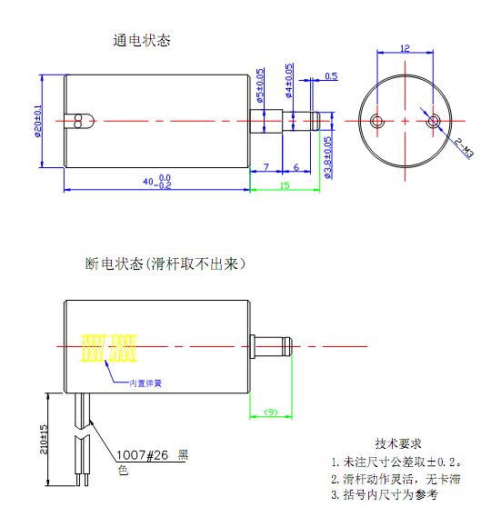 圓管式電磁鐵T2040 是電磁鐵廠家研發、設計的一款內置彈簧的推拉式電磁鐵,在不影響產品性能的前提下,把復位彈簧內置,有效的節省了電磁鐵整體尺寸,提升了客戶空間的使用