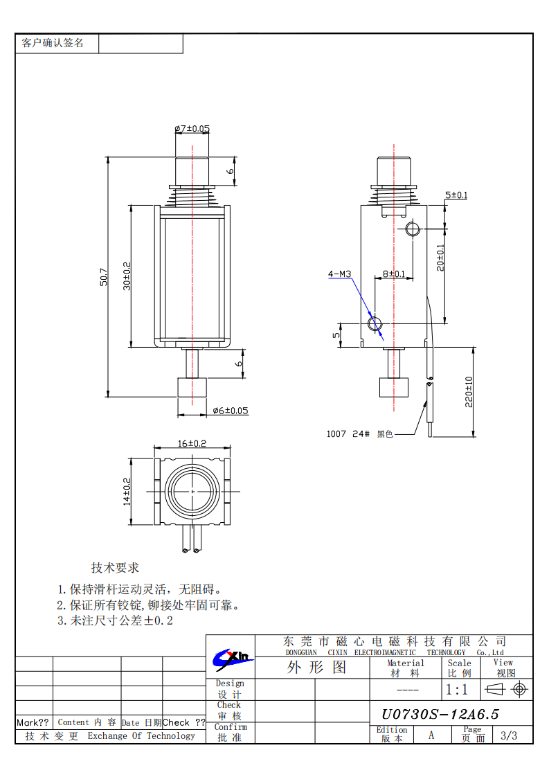 壓力鍋U0730S推拉電磁鐵DC12V制動