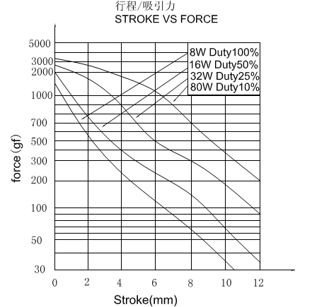 縱向:代表電磁鐵在對(duì)應(yīng)行程時(shí)的力量 單位為克(g)